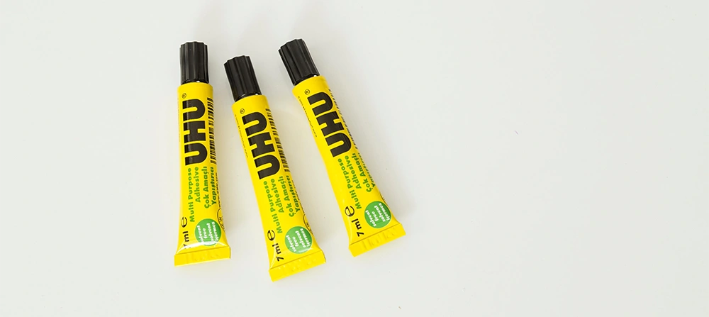• Uhu kuruduktan sonra uhu lekesi için yapılacak ilk müdahale; yapıştırıcının fazlasını kredi kartı gibi plastik bir kart veya küt ağızlı, ince bir tereyağı bıçağı kullanarak hafifçe kazımaktır.